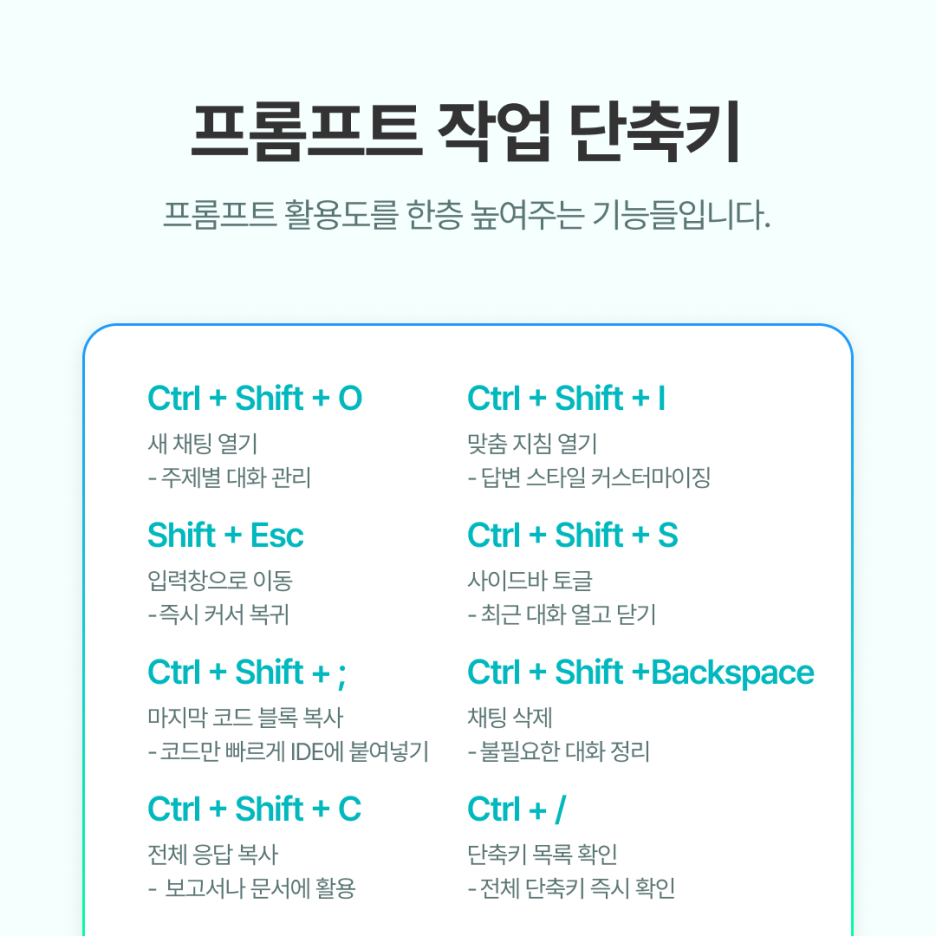 이런 고급 단축키는 개발자, 마케터, 디자이너, 인사팀 등 모든 직무에서 AI 생산성 향상에 핵심이 됩니다.
