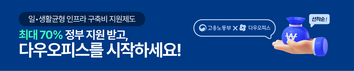 2025 일·생활균형 인프라 구축비 지원 제도 최대 70% 할인 혜택 + 다우오피스 50% 중복 할인 혜택의
