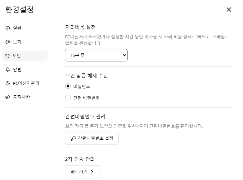 – PC, 모바일, 웹 전체에서 2차 인증 설정 가능
