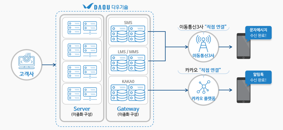 고객사 서버 연동 방식으로 설치/개발/기술지원이 용이합니다.자체 서버를 운영하는 고객사에게 가장 적합합니다. |