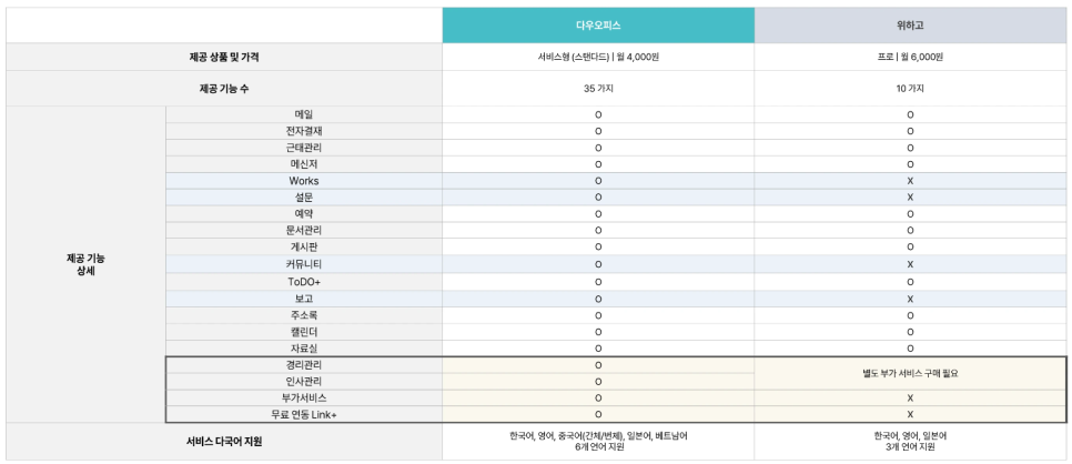특히, 다우오피스와 더존 위하고는 많은 기업들이 실제 비교 대상으로 삼는 대표적인 그룹웨어 솔루션입니다.
