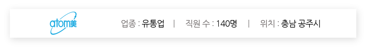 애터미는 2009년 헤모힘을 유통하며 급성장한 애터미는 매년 평균 40%~50%이상의 매출 성장을 하고 있습니다. 그로 인해 유수의 외국계를 포함한 한국계 네트워크 마케팅 기업 매출 1위를 기록하고 있는 글로벌 초일류 기업입니다. 애터미는 네트워크 마케팅의 기본 원칙을 지키고 고객과 회사와의 약속을 지키기 위해 원칙중심의 문화를 실천하고 있습니다. 더 나아가 고객과 기업의 동반성장을 위해 협력사에 파격적인 지원을 하고 있으며 직원과 회원들에게 나눔의 삶을 강조하고 실행하고 있습니다.