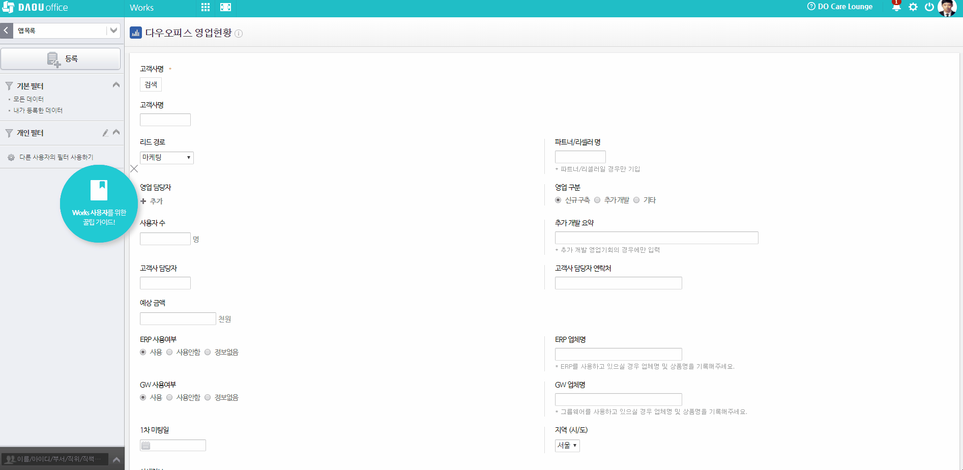 주간 팀장 미팅 시, 구두로 보고되었던 형식에서 다우오피스 도입 이후 보고 기능을 통한 보고서를 작성하여 그에 따른 이력이 남게 되었고, 보다 효과적인 회의를 할 수 있게 되었습니다. 또한 부서별 R&R이 명확해지고 업무도 효율적으로 진행되는 효과를 볼 수 있었습니다. 뿐만 아니라 게시판, 커뮤니티 기능을 통해 사내 활동을 전사적으로 공유하고 있으며, 전사 캘린더 기능을 통한 스케줄 관리로 직원들 간의 소통도 자유롭게 이루어질 수 있었습니다.