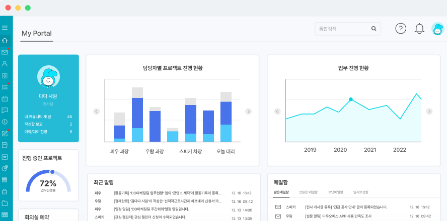 - 인사정보: 관리자가 업데이트한 인사 정보가 실시간 동기화되어 최신 인사 정보 확인 가능