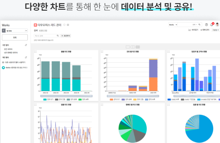 다우오피스의 경우 모바일을 완벽하게 지원하고 있으며, Works 기능을 통해 영업관리, 구매, 재고, 계약 관리 등의 다양한 유형의 업무를 처리할 수 있는 기능을 제공하고 있습니다.