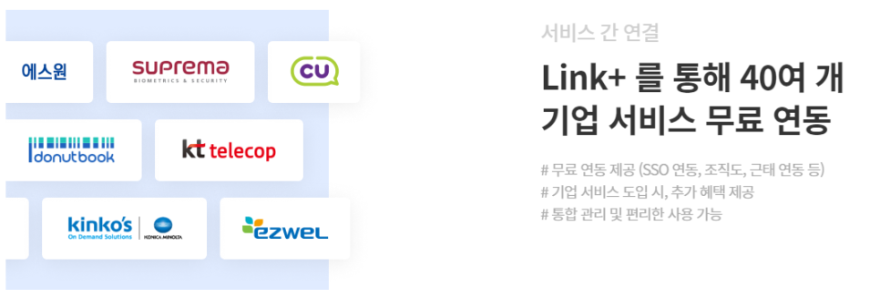 또한 기업에서 사용하는 다양한 서비스를 통합하여 관리, 사용할 수도 있습니다.