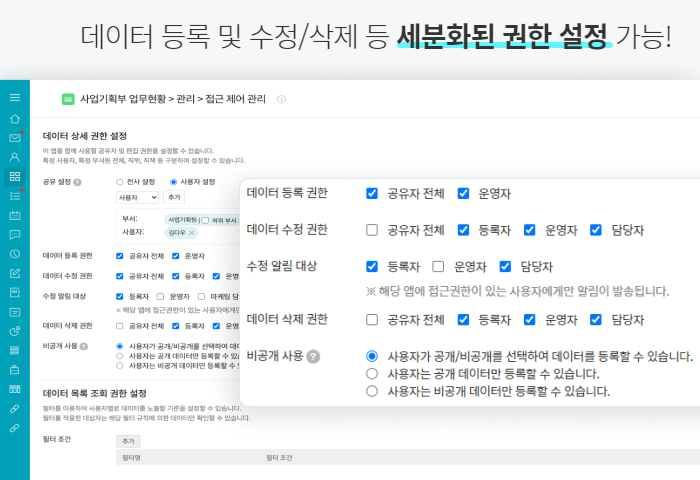 Works의 주요 기능으로는 데이터 분석, 데이터 연동, 접근제어, 앱 가져오기/내보내기가 있답니다.