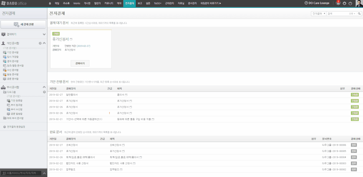 다우오피스의 전자결재 기능을 통해 어디서든 결재 문서 작성과 신속한 확인이 가능해져, 집에서든 회사에서든 결재를 받지 못해 업무를 진행하지 못하는 상황이 사라졌습니다. 모바일로도 확인이 가능하니 사실상 장소의 제약이 아예 사라졌다고 봐도 무방합니다. 결재 문서는 개인 pc나 다우오피스에 보관이 가능하기 때문에 예전처럼 따로 보관할 필요가 없어 사무실 공간 활용도가 높아졌고, 결재 문서가 필요한 경우에도 쉽게 찾을 수 있어 불필요한 시간 낭비를 줄였습니다.