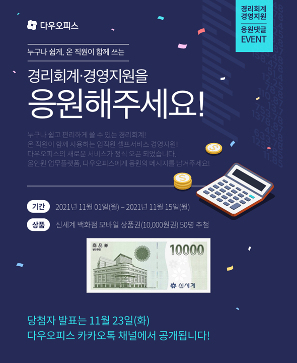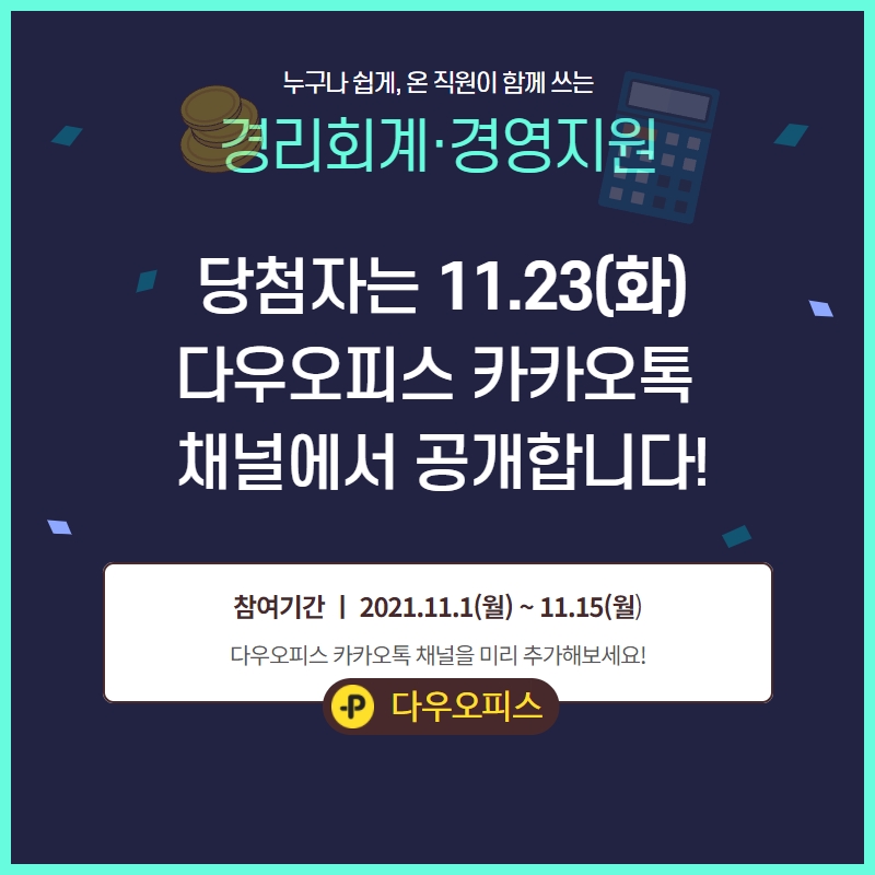 당첨자는 11월 23일 다우오피스 카카오톡 채널에서 공개합니다!
