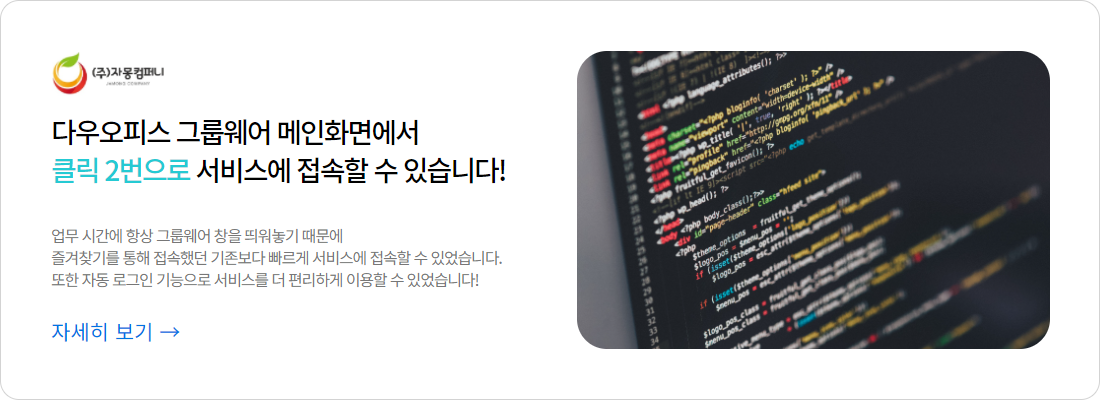 다우오피스와는 가입 및 SSO (Single Sign On, 한 번의 로그인으로 여러 서비스 로그인 가능) 가 연동되고 있습니다.