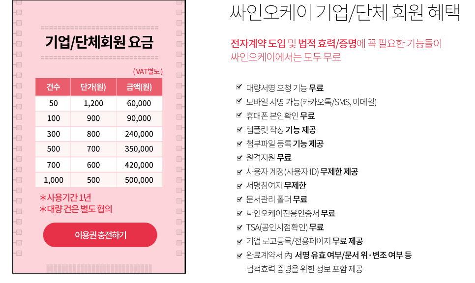 3) 싸인오케이에서 가입내역 확인 후, 귀사 전용페이지 개설