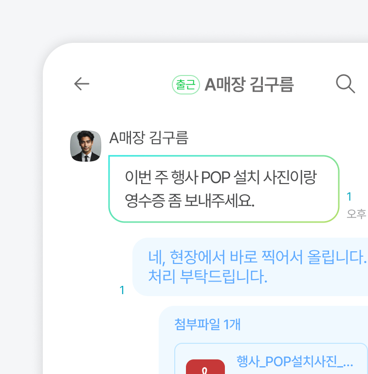 모바일 첨부 기능 : 현장 직원이 즉시 증빙 자료를 올리고 본사는 바로 확인
