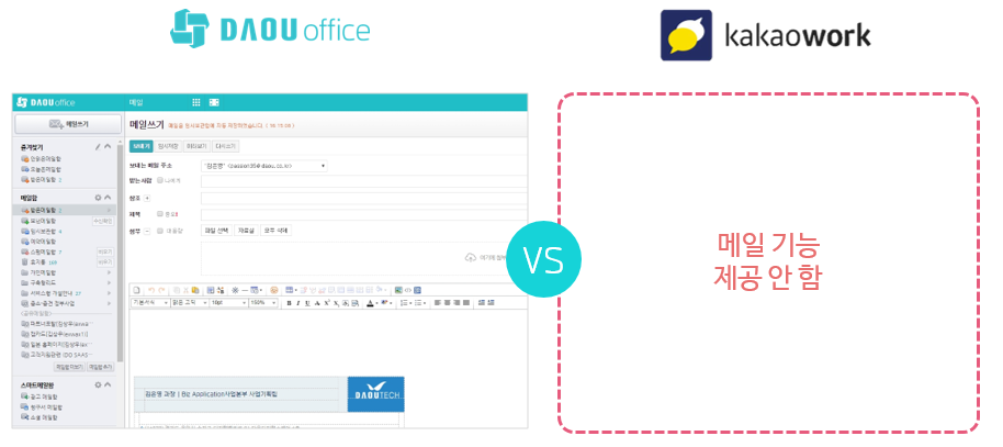 반면 다우오피스는 20년 노하우의 기업메일, '테라스메일'을 탑재하였습니다.