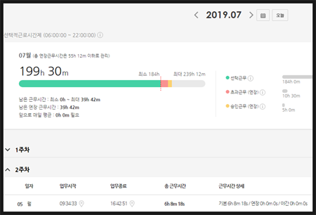 * 수기로 작성된 근태관리 보고서는 인정되지 않으며, 기계/전자적 장비에 의한 근태관리 기록만이 인정 됩니다.