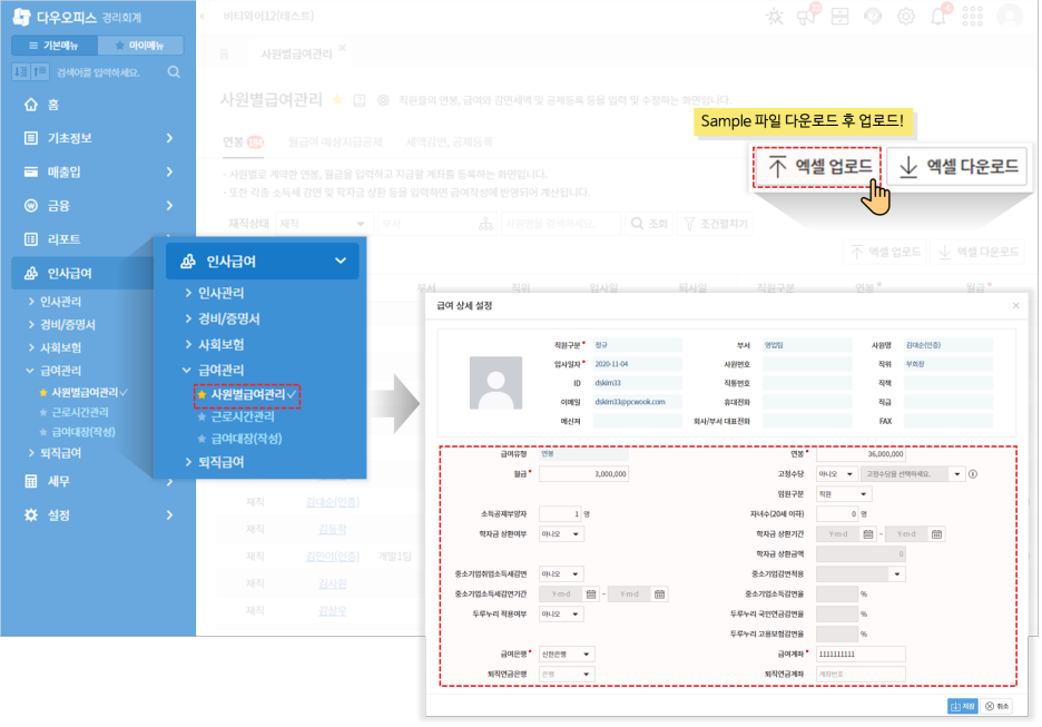 엑셀을 활용해 직원별 급여정보를 일괄 등록할 수도 있어요😉
