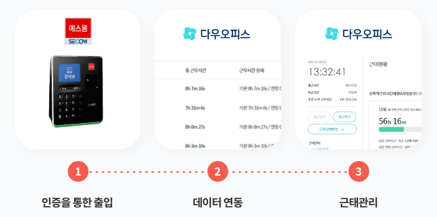 또한, 다우오피스는 에스원(세콤) 출입통제 솔루션과 연동이 가능합니다.