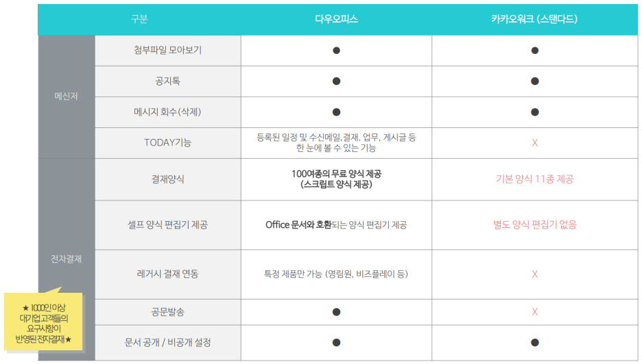이번에는 다우오피스와 카카오워크의 메신저 및 전자결재 기능을 비교해 드릴게요!
