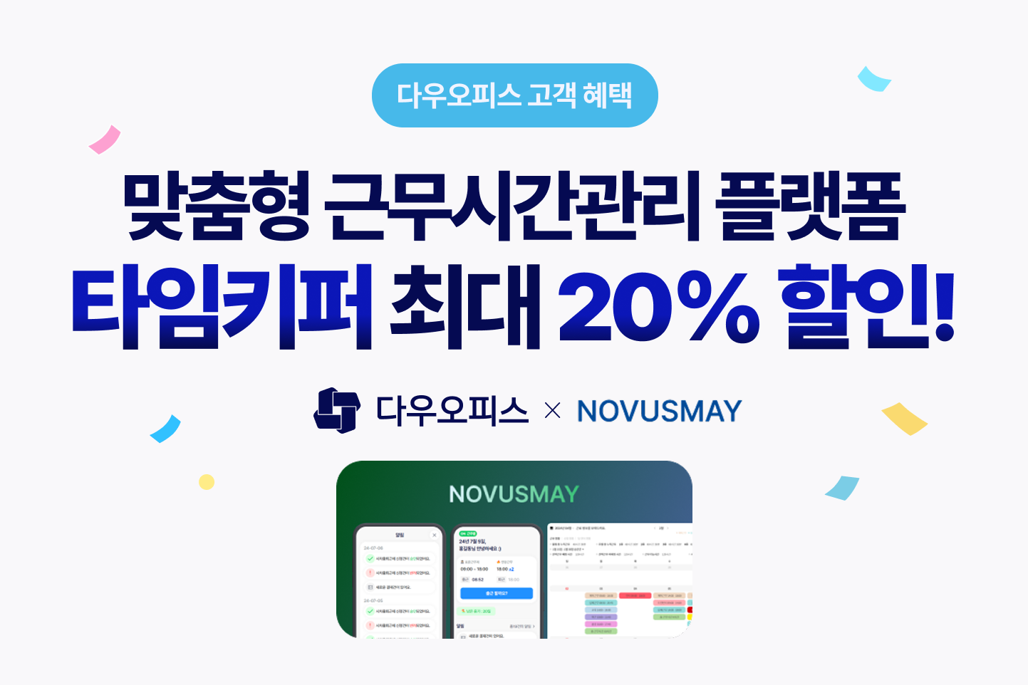 근무시간관리 플랫폼, 최대 20% 할인! [타임키퍼, 다우오피스 제휴]