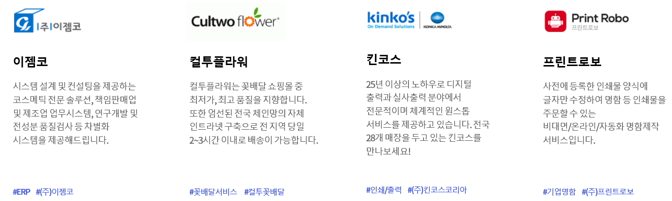 👇기업 서비스별 자세한 소개와 연동방법이 궁금하시다면 하단의 링크를 클릭해주시기 바랍니다!👇