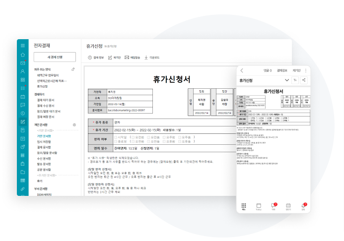 전문화된 다우오피스 전자결재 기능을 이용한 처리가 가능합니다.