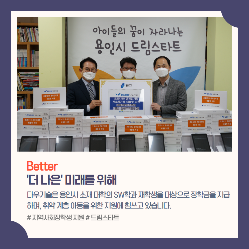 다우기술은 '더 나은'미래를 위해 용인시 소재 대학의 SW학과 재학생을 대상으로