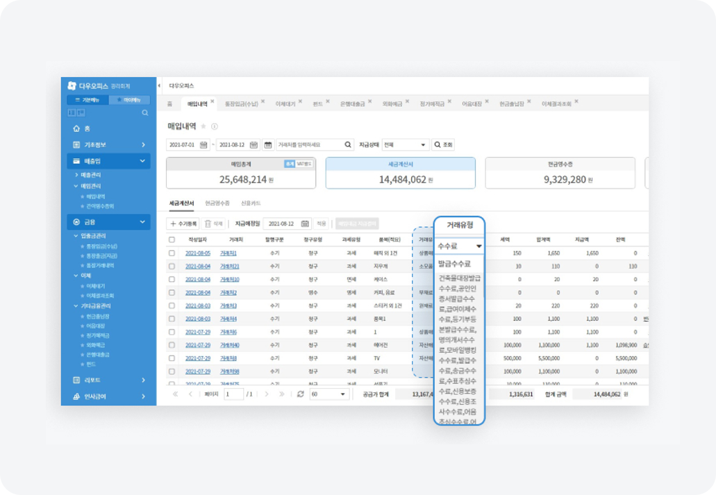 깔끔하고 모던한 디자인의 UI와 사용자 편의성을 높여줄 화면(대시보드), 그리고 그룹웨어와 경리회계 기능의 유기적인 연계로 편의성을 제공합니다.