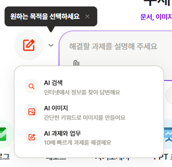 검색, 이미지 생성, 과제 업무 해결의 목적을 설정하여 더욱 적합한 답변을 얻을 수 있어요. 😎