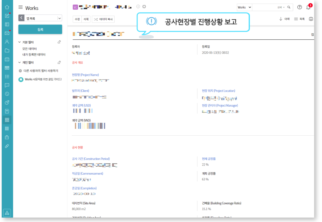 "Works를 통해 건설현장별 현황을 쉽고 빠르게 파악할 수 있습니다.