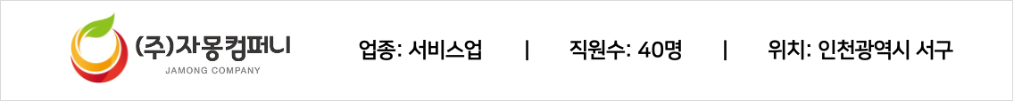 (주)자몽컴퍼니는 2010년 설립되었으며, 인프라 기술을 기반으로 SI,NI등 정보의 새로운 흐름을 창출하는 국내 최고의 기술 서비스를 목표로 계속 발전하고 있습니다. 주요 사업으로는 시스템 구축 및 유지보수 및 소프트웨어 솔루션 개발을 주 사업으로 하고 있습니다. 최고의 기술력과 경험을 바탕으로 고객에게 최상의 서비스와 솔루션을 제공함으로써 새로운 흐름을 창출하고 고객, 회사 그리고 넓게는 인간의 삶의 질을 향상하고 더 나은 방향으로 상생(Win-for-All)함을 추구하는 NO.1 IT전문기업입니다.