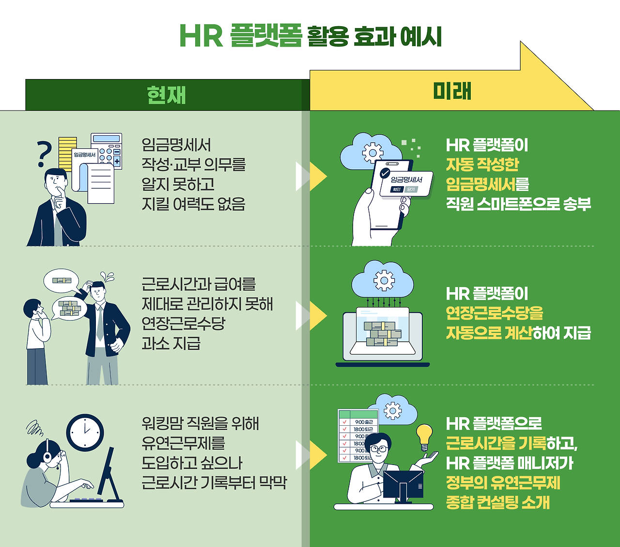 사업체를 운영하면서 임금명세서 작성 교부나 근로시간 및 급여 관리, 유연근무제 도입에 어려움을 느꼈던 경험이 있으신가요?