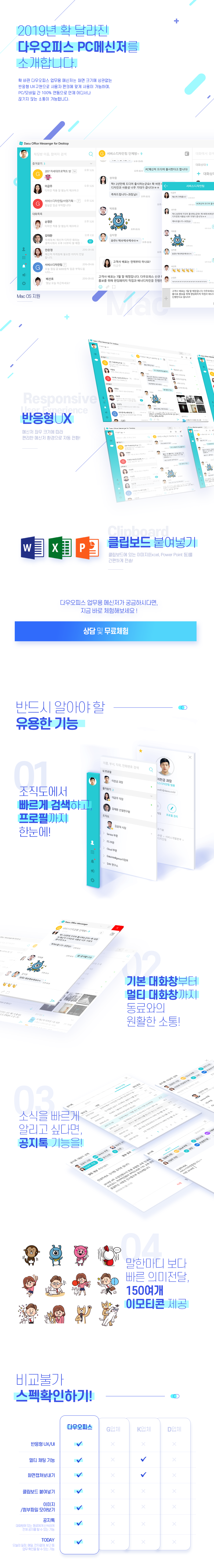 공지사항 다우오피스 메신저 기능 업데이트 안내 다우오피스 2020. 3. 6. 11:06 그룹웨어 다우오피스, 새로워진 업무용 메신저를 소개합니다!반응형 UX 적용으로 최적화된 화면을 제공하는 다우오피스 메신저를 만나보세요! 지금 바로!신규 업무용 메신저 소개자료 다운로드가 필요하신 분은▼ 아래 버튼을 클릭해주세요! ▼