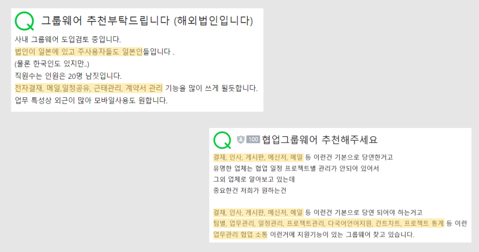실제로 그룹웨어 도입을 고민하는 분들의 질문에 대한 답변도 직접 해드리고 있답니다!