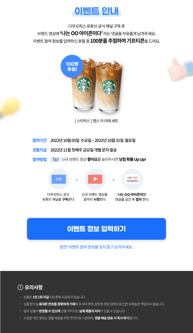 다우오피스가 브랜드 영상 런칭 기념 이벤트로 찾아왔습니다 😍