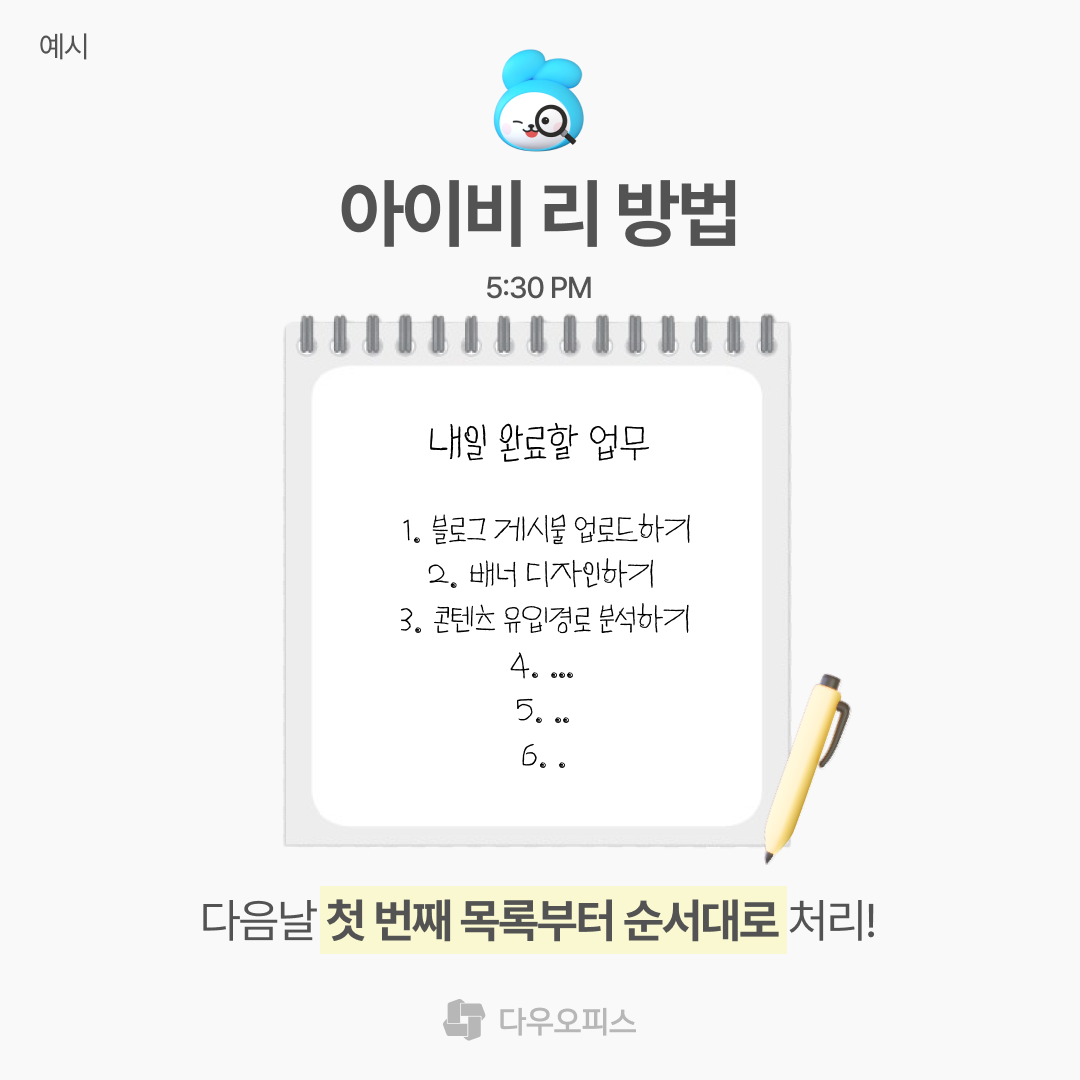 다우오피스가 알려드린 업무 우선순위 수립 방법을 참고해서, 생산적인 업무를 시작해보세요!