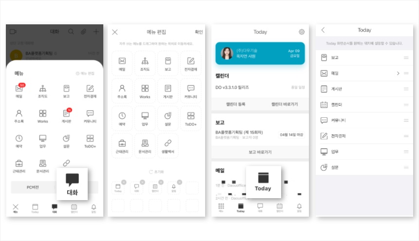 ② 모바일 메신저, Today는 모바일에서도 더욱 돋보이는 기능들이에요.