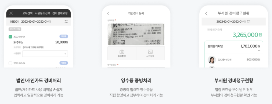 모바일로 영수증을 촬영하고 첨부하여 경비처리가 가능하죠.