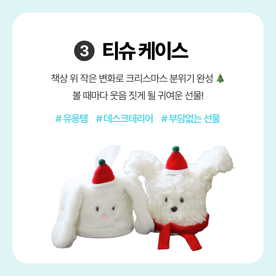 투박한 포장지 대신 귀여운 티슈 케이스로 분위기를 바꿔보세요. 🧻