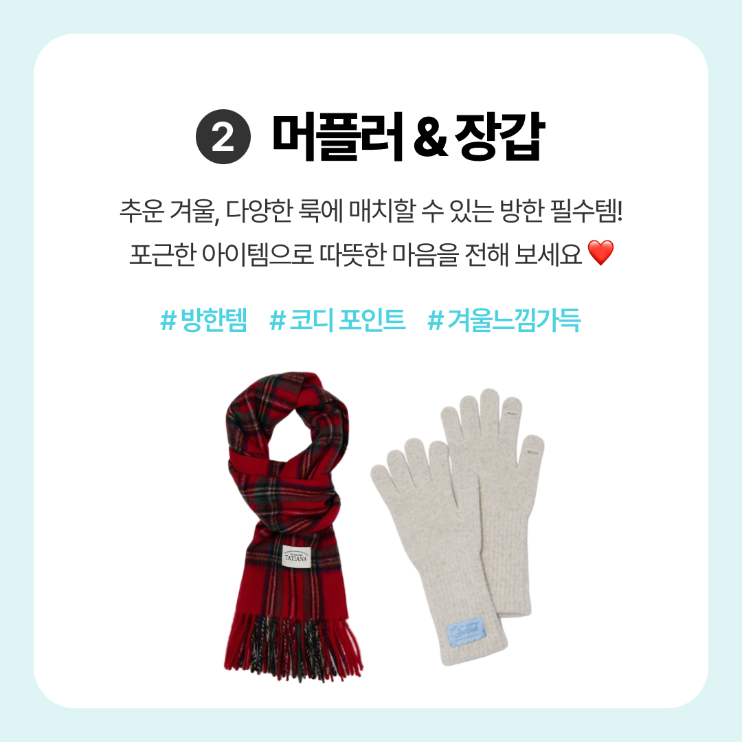 출근길 찬바람에 움츠러드는 계절, 따뜻한 머플러와 장갑 하나면 든든하죠! 🧣