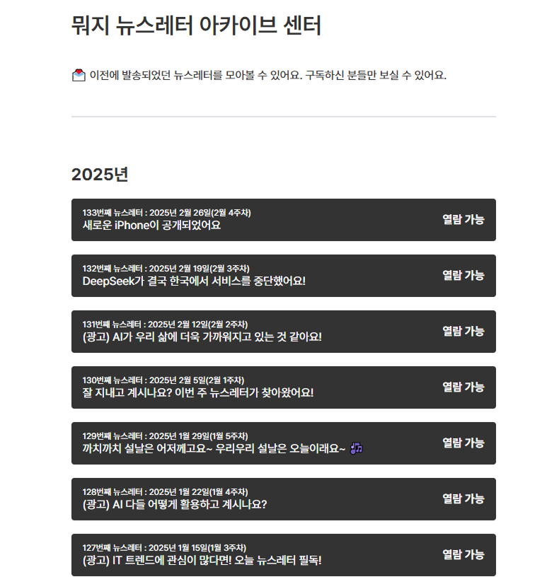 뭐지 뉴스레터는 주간 IT 소식을 요약해서 메일로 전달해주는 뉴스레터입니다!