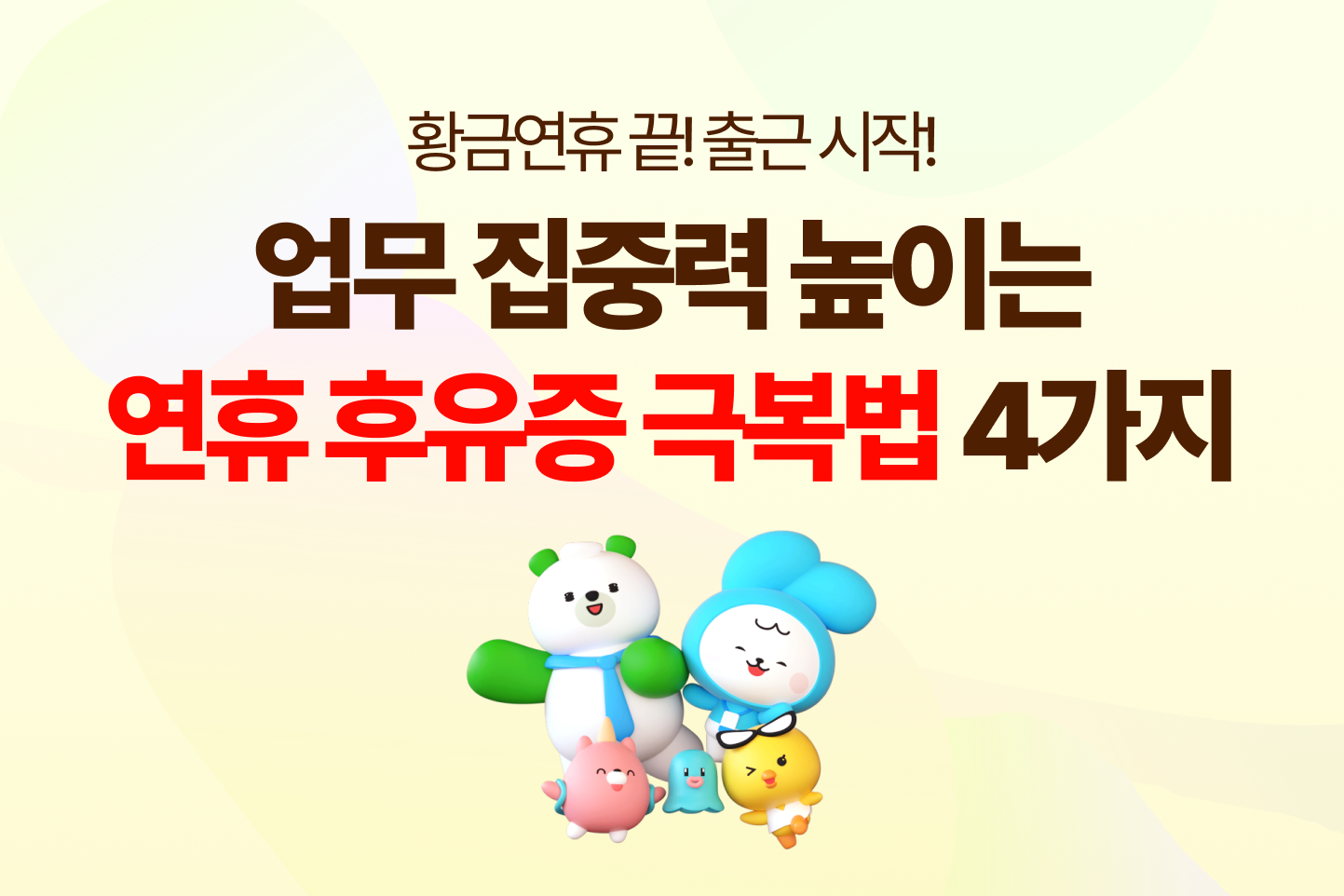 연휴 이후 충분한 휴식을 취해주지 않으면, 연휴 후유증이 지속되어 업무 집중력 하락뿐만 아니라