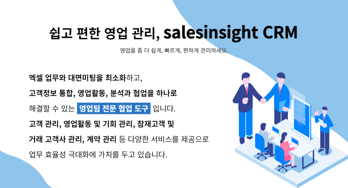 영업관리의 자동화, 이제 ‘salesinsight CRM’와 함께 하세요.