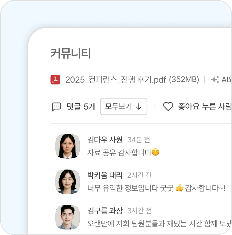 업로드된 자료를 공지, 보고, 기록 등 다양한 목적으로 활용할 수 있습니다.