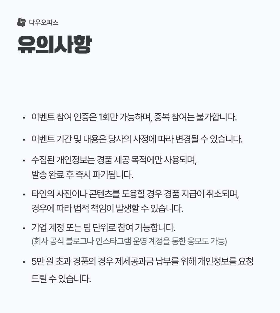 본 이벤트는 다우오피스 기존 고객, 무료체험 고객