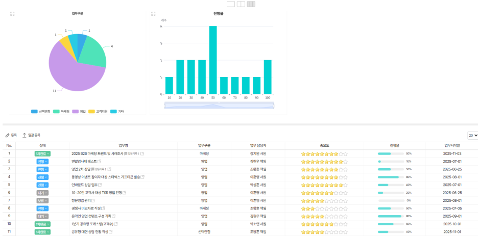 - 일정·업무 진행 상황을 한눈에 확인 가능한 대시보드